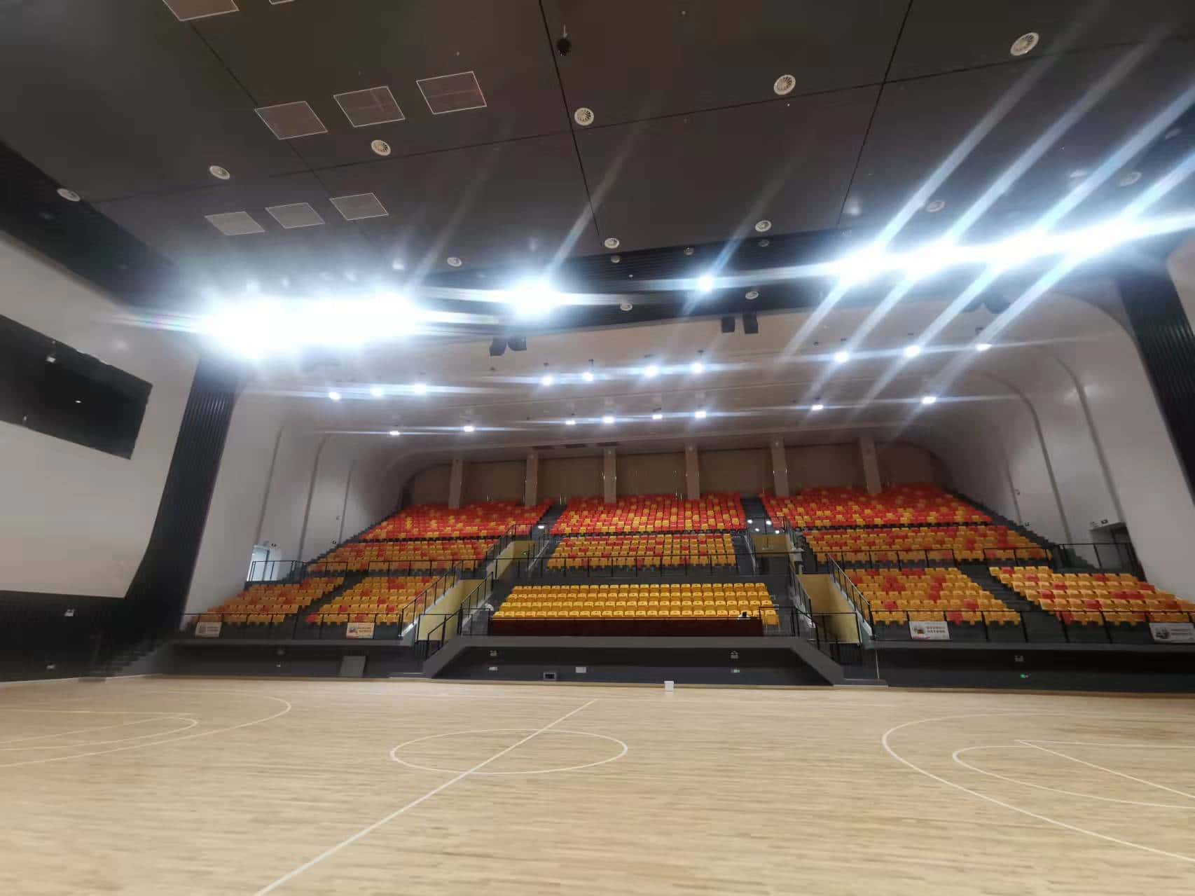 汕头潮汕体育馆扩声系统包括:体育馆、篮球训练馆、羽毛球场,均采用了28只线阵列扬声器;体育馆主席台流动返送采用了4只流动返送全频扬声器,均匀覆盖观众与场地,以确保声场的均匀度,满足国际级、州际级、大型转播体育场馆使用、文艺演出、全民健身的使用。